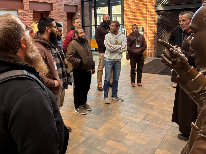 Kevin Thompson, OFM Cap., co-director of our Postulancy program in Colorado Springs, CO, joined postulant Nate Sisack as the traveled to Detroit, MI, where as all the USA postulants participated in a retreat from February 1-6, 2026, at the Capuchin Retreat Center in nearby Washington, MI. The most important goal of the retreat days provided the opportunity for all the postulants to come to know one another before their novitiate begins in San Lorenzo, California. One of the days was spent at the Solanus Casey Center in Detroit where our own Alex Hostoffer, OFM Cap., "did a great job," they say, reflecting how our Capuchin Constitutions treat our vows of poverty, chastity and obedience - vows which the young men will profess after their novitiate year which begins in July. That afternoon, our brother Dan Crosby, OFM Cap., spoke about how Blessed Solanus Casey, OFM Cap., lived out those vows in fraternity and service.